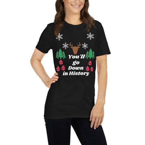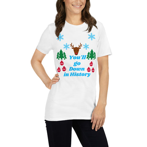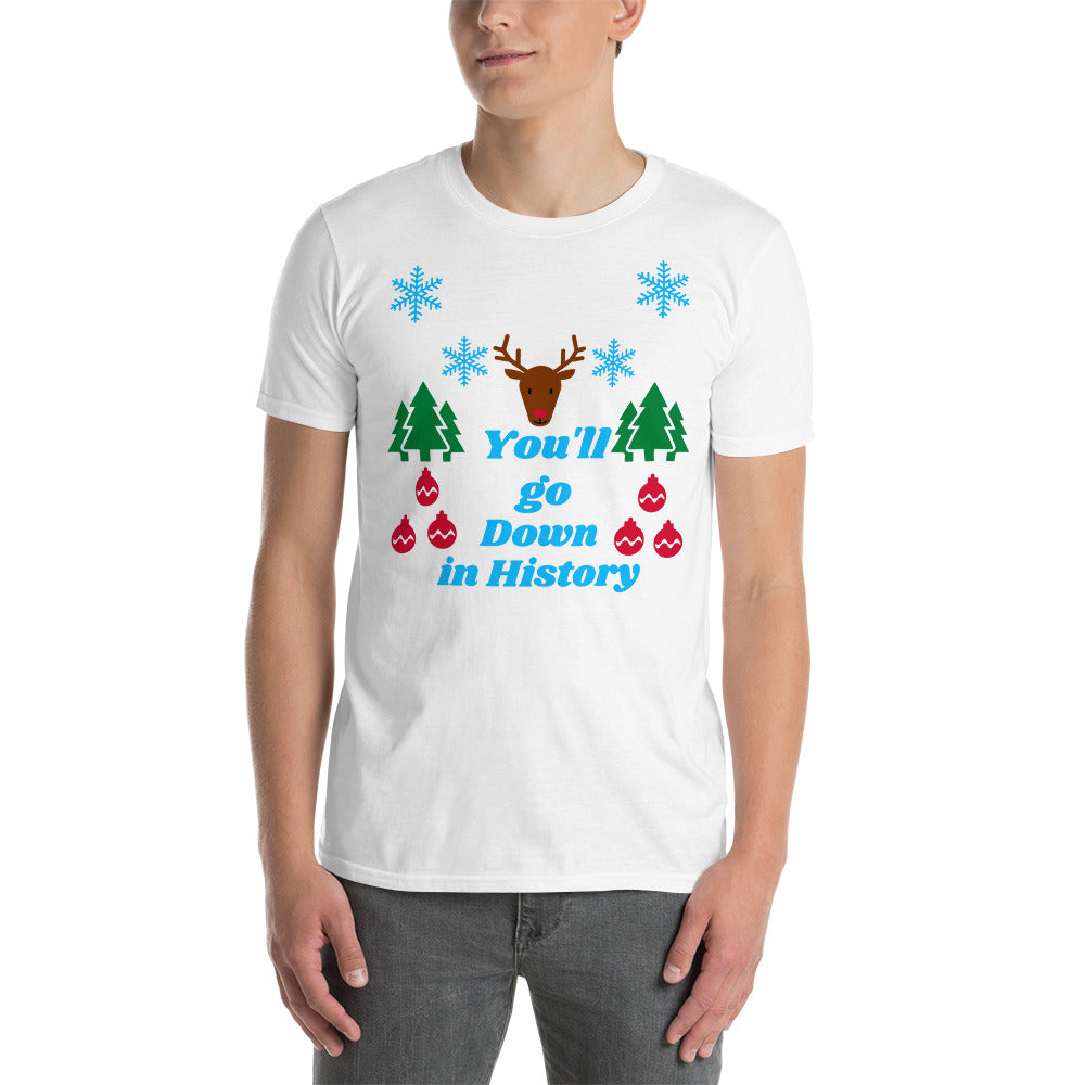 Based on the holiday classic Rudolph the red nosed reindeer. Great for gifting at Christmas parties and other festive holiday events. Comfortable for men, women, boys and girls. Message us for bulk orders. Get your shirts today!